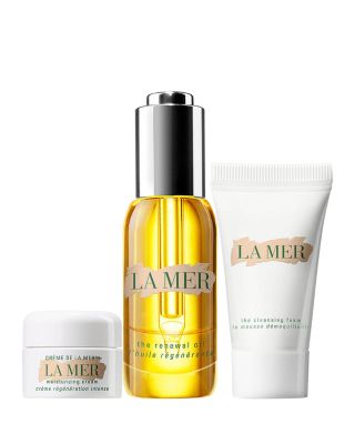 La Mer The Miraculous Glow Gift Set. Glow all out with the total illumination of the limited-edition Miraculous Glow Set. Set Includes: - The Cleansing Foam, 0.17 oz. - The Renewal Oil, 1 oz. - Creme de la Mer, 0.24 oz. What It Does: Gently purify skin with the micro-foam of The Cleansing Foam. Nourish and soften skin with just a drop or two of The Renewal Oil to glow. Pat ultra-moisturizing Creme de la Mer onto skin to help heal dryness. How To Use It: For optimal results, apply your regimen in the following order: The Cleansing Foam, The Renewal Oil and Creme de la Mer.