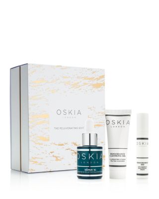 Oskia Holiday 2019 Rejuvenating Edit. A collection of rejuvenating essentials from Oskia. Set Includes: - Super 16 Advanced Nutri-Active Collagen Serum, 1 oz. - Renaissance Cleansing Gel, 1.2 oz. - Renaissance 360 Anti-Aging & Brightening Cream, 0.3 oz. What It Does: - Super 16: A powerful serum that blends 16 super nutrients and bio-actives, including bakuchiol, to target multiple aging concerns. - Renaissance Cleansing Gel: A nourishing and illuminating pink cleansing gel that turns into an oil and melts into skin to reveal fresh bright skin. - Renaissance 360: A nourishing day cream designed to combat the signs of aging, fade pigmentation, illuminate the skin and improve elasticity and the facial contour.