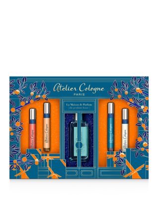 Atelier Cologne La Maison de Parfum Gift Set. Enter the world of Atelier Cologne, a true Maison de Parfum. Discover for the Holidays a best-seller and 4 trial sizes. Set Includes: - Clementine California Cologne Absolue Pure Perfume, 1 oz. - Cedre Atlas Cologne Absolue Pure Perfume, 0.1 oz. - Pomelo Paradis Cologne Absolue Pure Perfume, 0.1 oz. - Orange Sanguine Cologne Absolue Pure Perfume, 0.1 oz. - Vanille Insensee Cologne Absolue Pure Perfume, 0.1 oz.