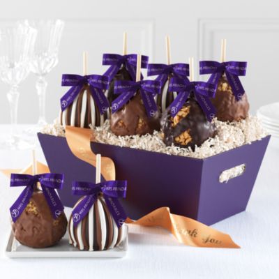 Bloomingdale's. Mrs. Prindable's Classic Indulgence Caramel Apple Basket Gift Set. Includes: (1) Triple Chocolate Jumbo Caramel Apple, (1) Milk Chocolate Walnut Pecan Jumbo Caramel Apple, (2) Triple Chocolate Petite Caramel Apples, (2) Milk Chocolate Walnut Petite Caramel Apples, (2) Dark Chocolate Cashew Petite Caramel Apples, (2) Toffee Walnut Petite Caramel Apples & much more...$250.00