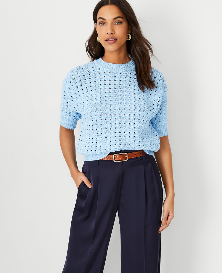 Geo Stitch Elbow Sleeve Sweater. $89.50